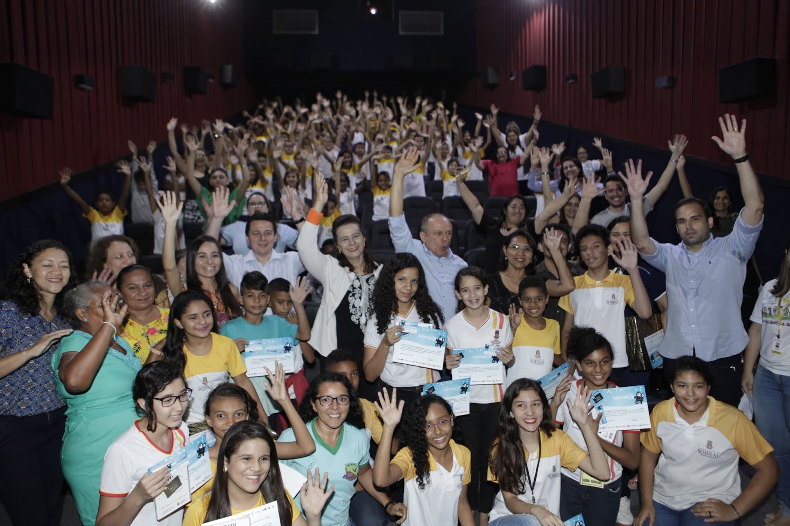 Na ocasião, foram exibidas quatro animações produzidas pelos estudantes da rede pública das cidades de Sobral, Limoeiro do Norte, Quixadá e Aracati, que participaram da 9ª edição da “Escola Vai ao cinema”. Durante a 9ª edição do projeto, foram beneficiadas 1.050 crianças e jovens da rede pública municipal de Sobral.Os estudantes vencedores do concurso de redação em 1° lugar, os alunos Rayana Silva (do Fundamental I) e Genilson de Lima (do Fundamental II) ganharam um computador, os segundos colocados Douglas Aguiar (do Fundamental I) e Isiane Castro (do Fundamental II) ganharam um passaporte de um ano para o cinema Pinheiros, e os terceiros colocados Matheus Evangelista (do Fundamental I) e Yab Alves (do Fundamental II) ganharam um passaporte de seis meses para o cinema.