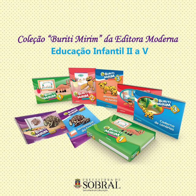 A Coleção “Buriti Mirim” da Editora Moderna possibilita as crianças do Infantil II ao Infantil V vivências com destaque para o brincar, para a preservação do meio ambiente assim como para as atividades que proporcionam o desenvolvimento das habilidades socioemocionais. A Coleção também conta com o “almanaque da família”, que valoriza as relações da criança com os seus familiares fortalecendo também a relação família e escola.