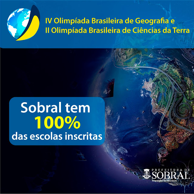 Todas as 28 escolas municipais de Sobral com 9º ano do ensino fundamental têm equipes inscritas na Olimpíada Brasileira Geo-Brasil (OGB) 2018, que compreende a IV Olimpíada Brasileira de Geografia (OBG) e a II Olimpíada Brasileira de Ciências da Terra (OBCT). Serão 250 estudantes formando equipes com três componentes, que participarão da primeira fase da OGB, de 6 a 11 de agosto de 2018.