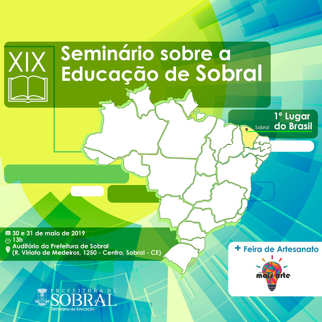 A Secretaria da Educação de Sobral promove, nos dias 30 e 31 de maio, o XIX Seminário sobre a Educação de Sobral, no Auditório da Prefeitura. Na ocasião, o município recebe gestores, educadores e