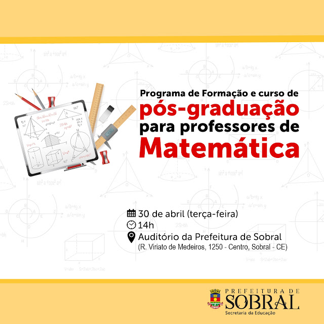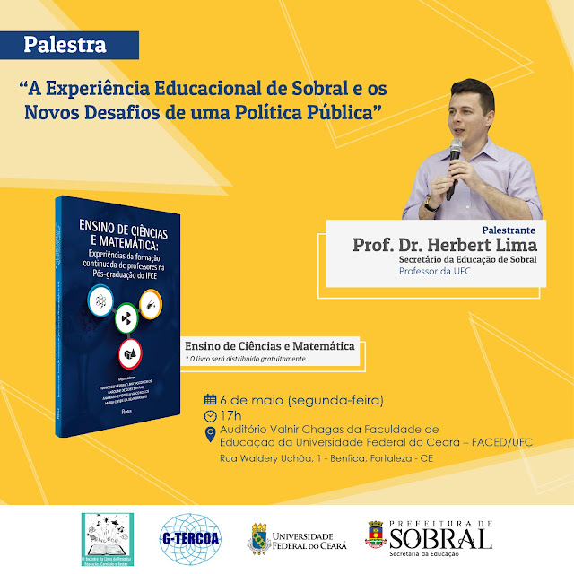 Em comemoração ao Dia da Matemática será realizado, no dia 6 de maio, às 17h, uma palestra com o secretário da Educação de Sobral, Herbert Lima, sobre a experiência educacional