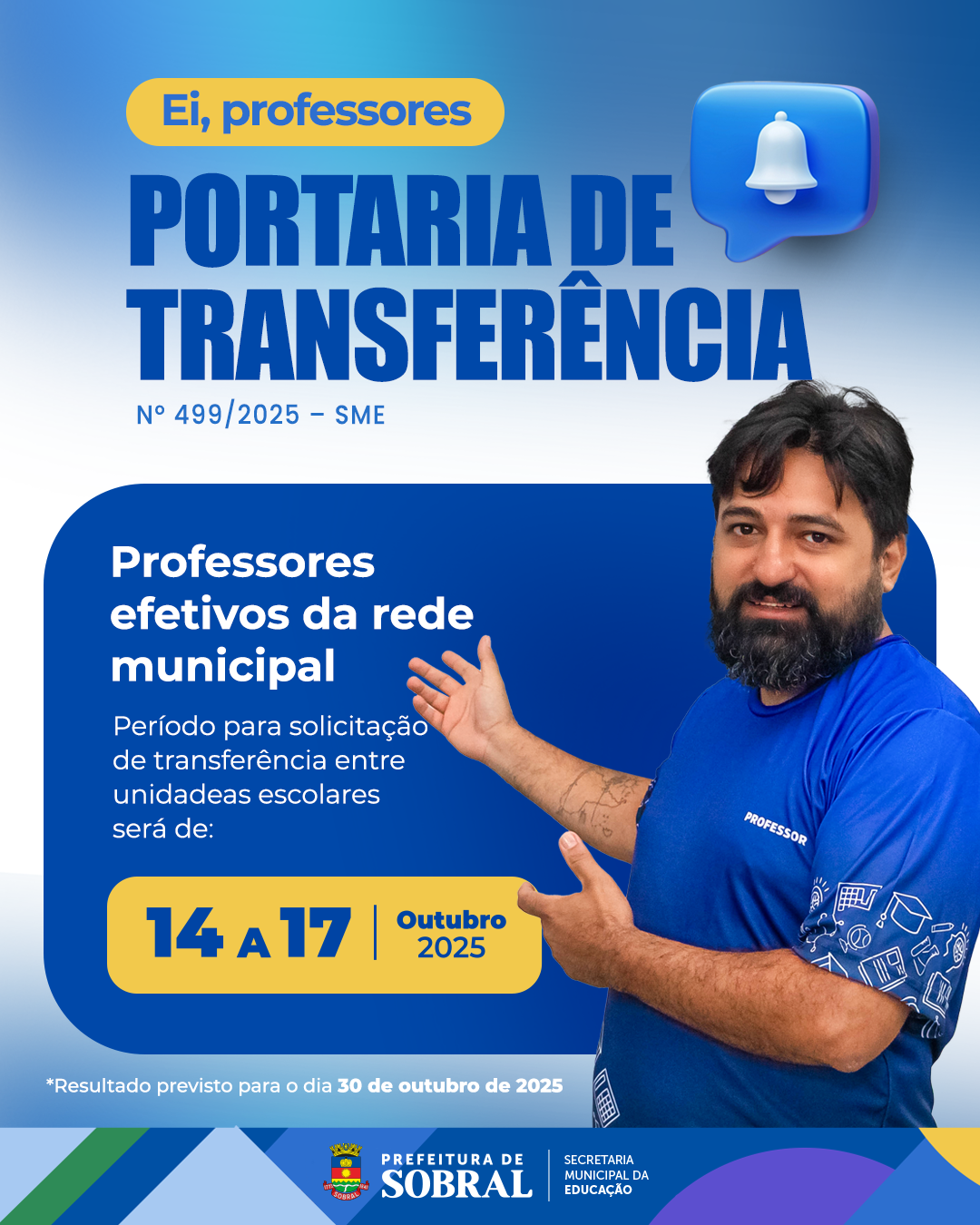 A Secretaria da Educação de Sobral publicou a Portaria nº 499/2025, que estabelece o período para solicitação de transferência entre unidades escolares da Rede Municipal de Ensino.